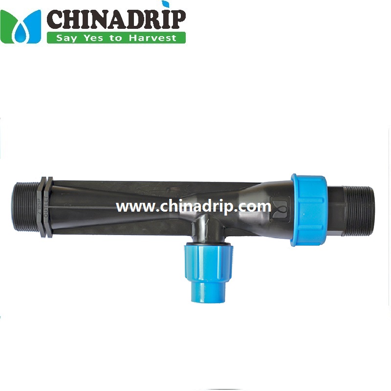 A venturi fertilizer injector, water driven by the pressure of the main irrigation pipe line. Excellent chemical resistance to most of the chemicals, highly efficient and compact differential pressure injection device, Economical and low cost option. NPT thread and BSP thread are both available.
