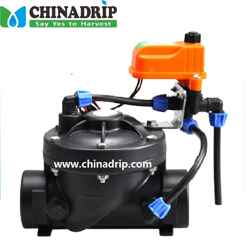 1This Solenoid Controlled Valve with 3-ways CHINADRIP Plus Solenoid, is a hydraulically operated, diaphragm actuated control valve with internal hydraulic Feed & Bleed control loop. The Plus Solenoid allows manual open, close, or auto controlling by electric signal.