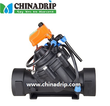1This Solenoid Controlled Valve with 3-ways CHINADRIP Plus Solenoid, is a hydraulically operated, diaphragm actuated control valve with internal hydraulic Feed & Bleed control loop. The Plus Solenoid allows manual open, close, or auto controlling by electric signal.